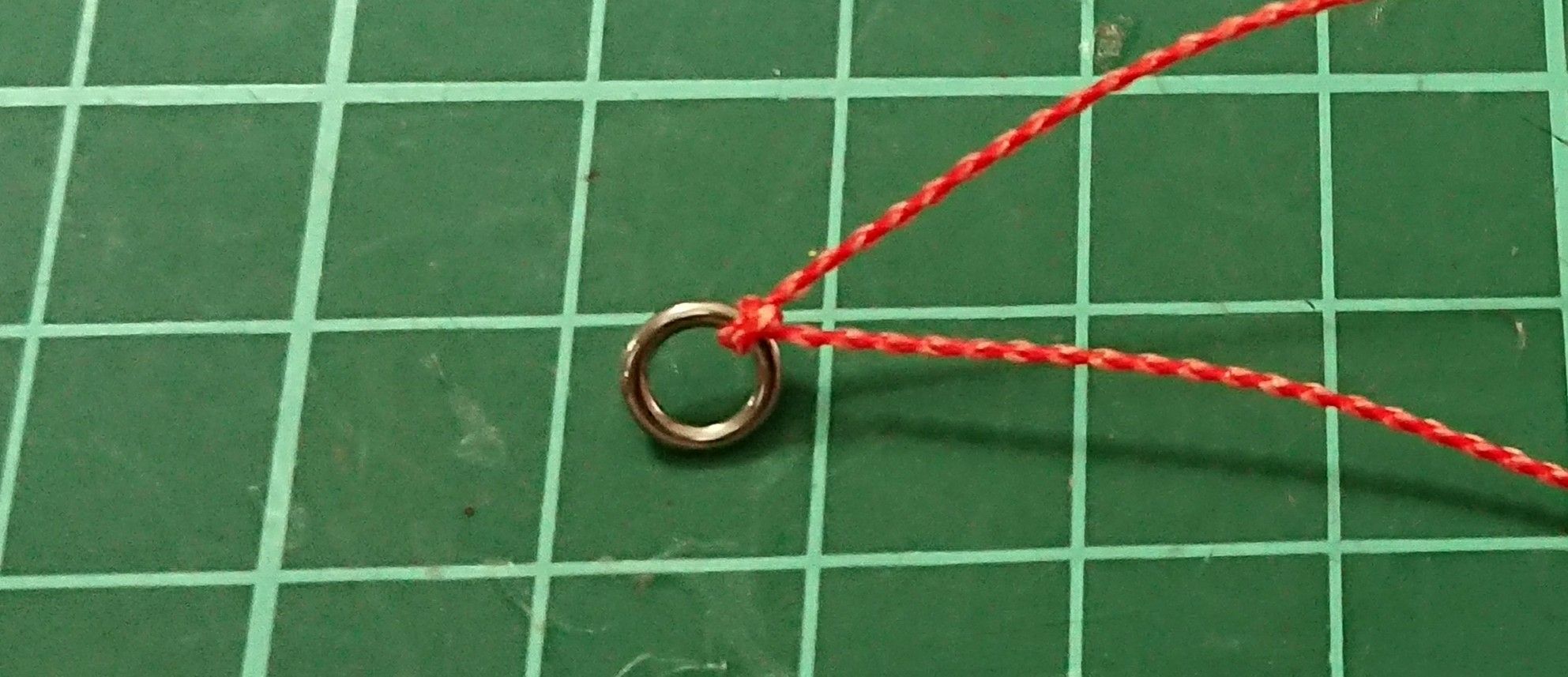 最後に絞めこむと伸びるので、リングのギリギリで結びます