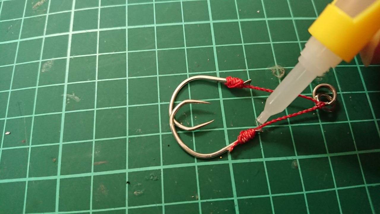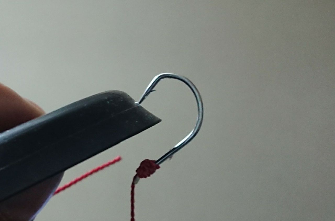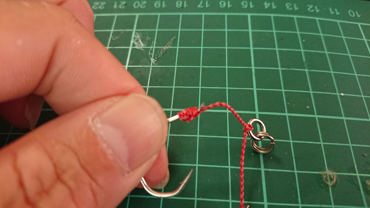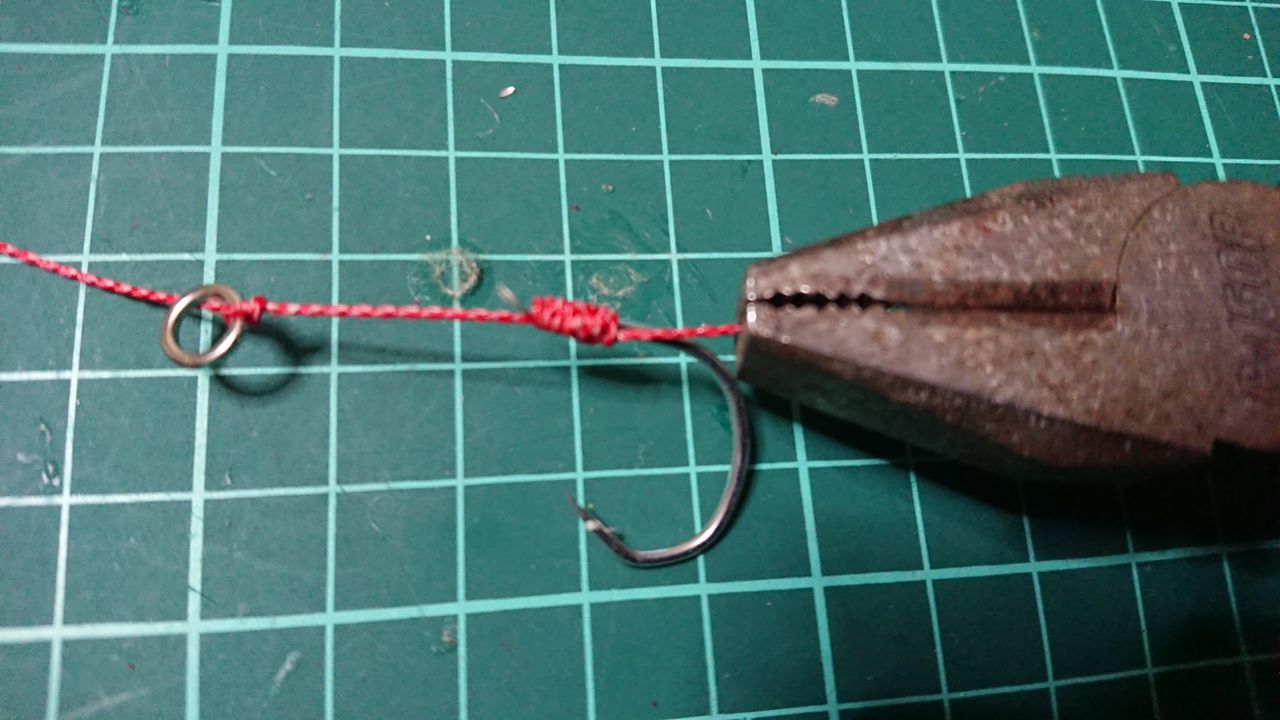 ケガをしないように、フックとラインを結んで締める時にはペンチを使って下さい。