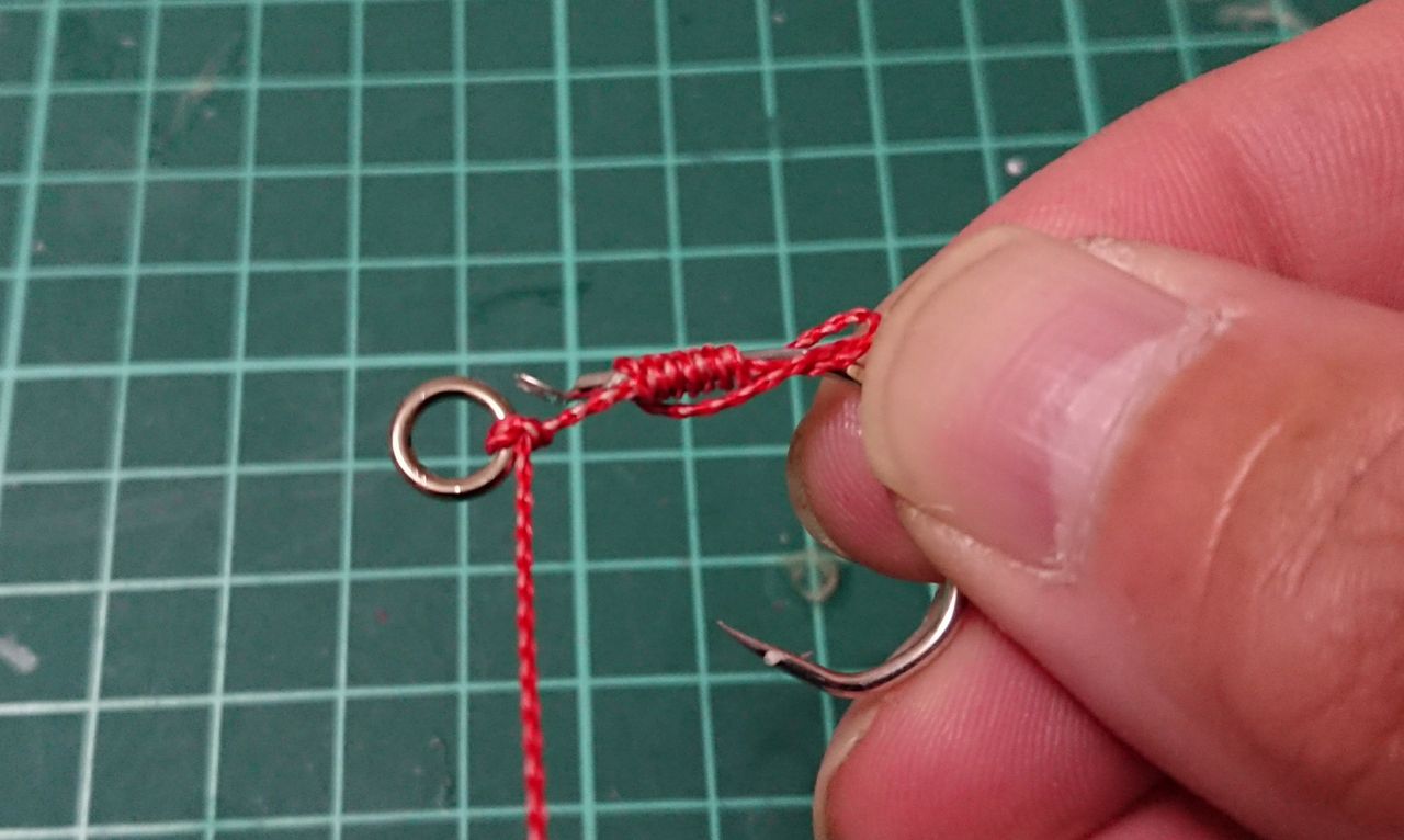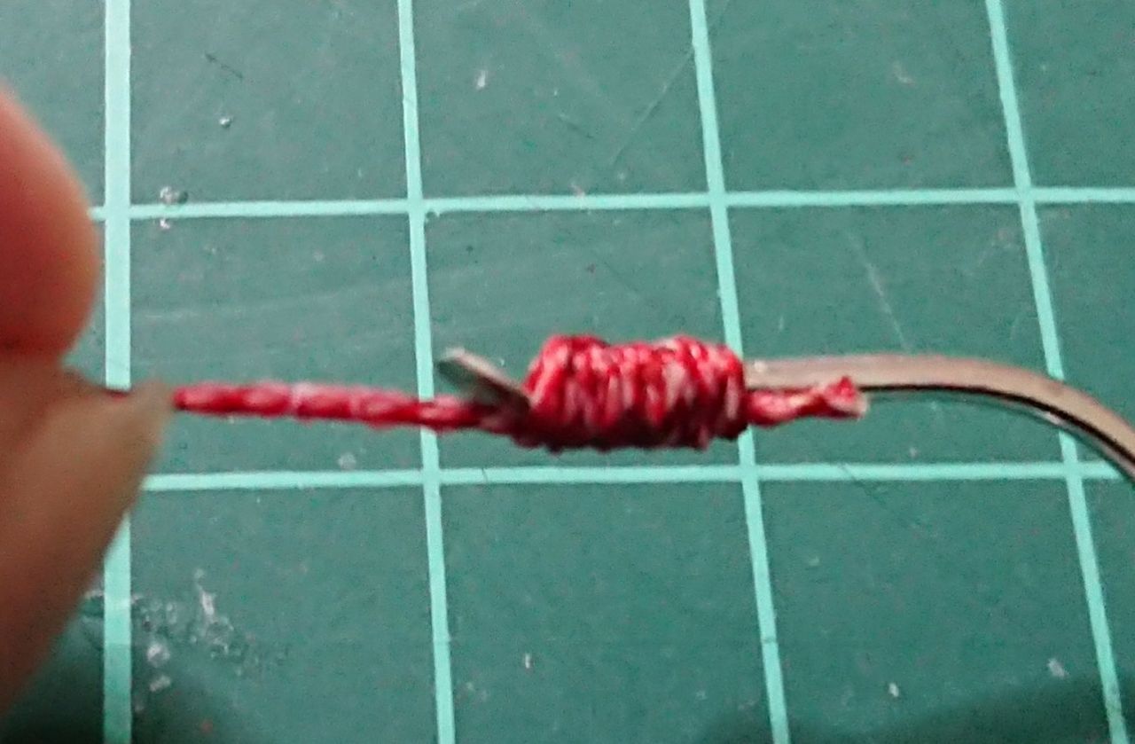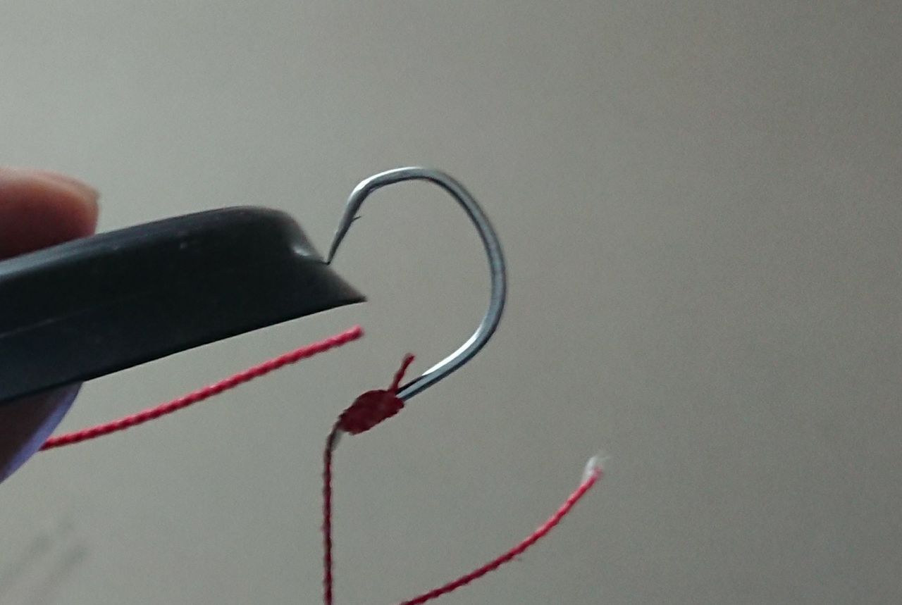ケガをしないように、フックとラインを結んで締める時にはペンチを使って下さい。