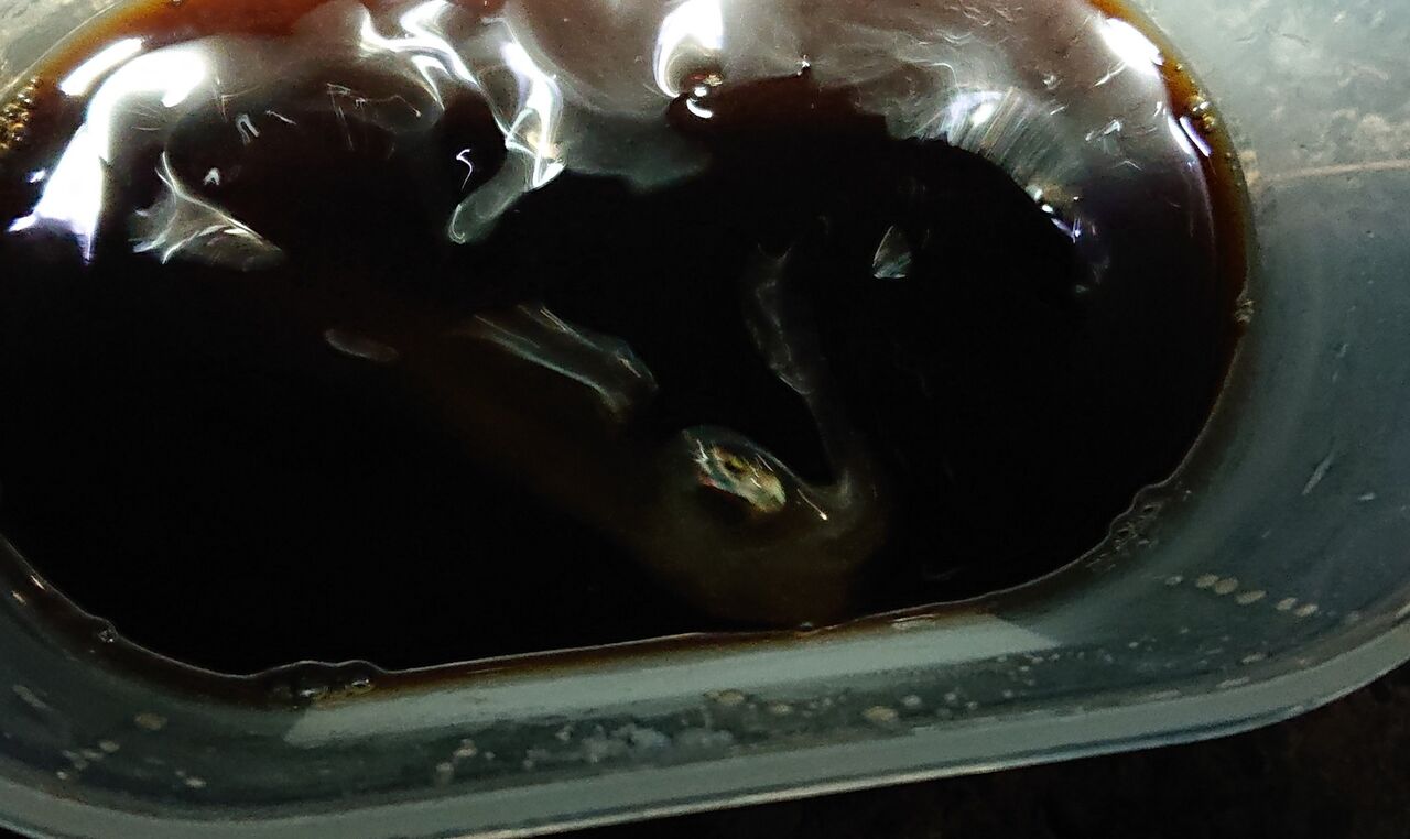 タレを吸って苦しいのか暴れています